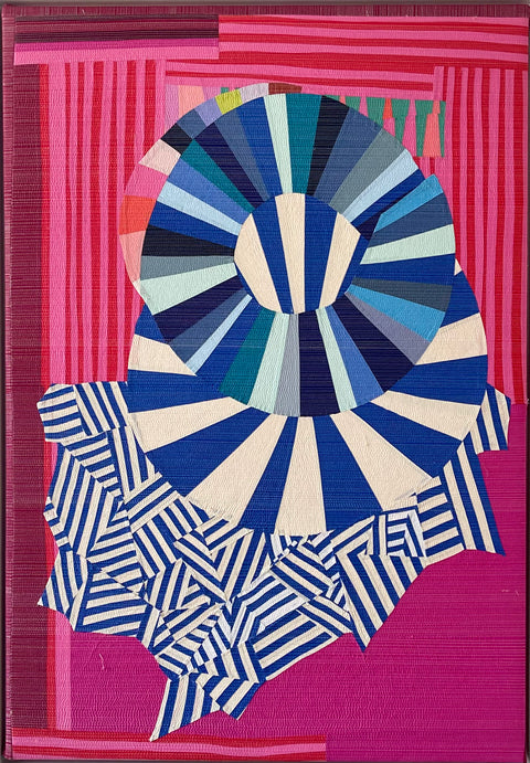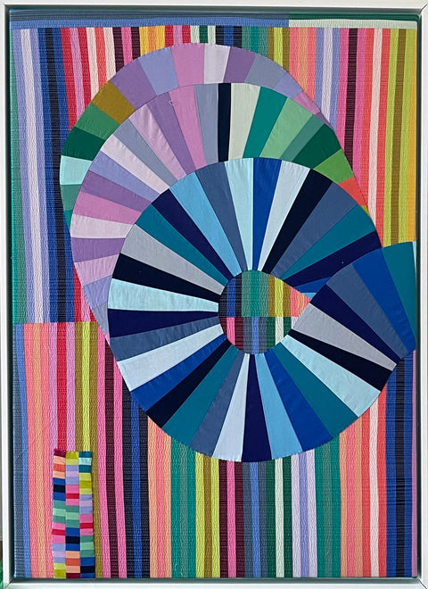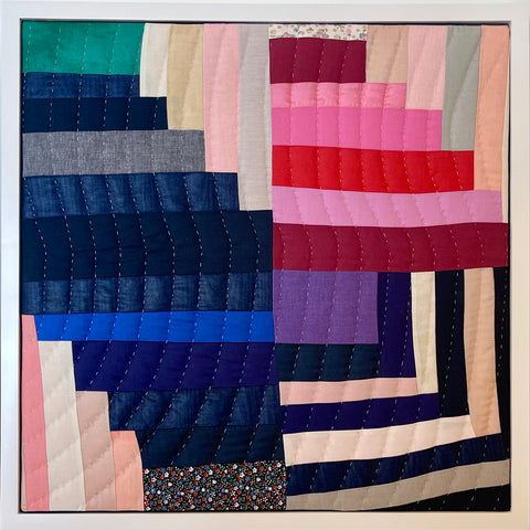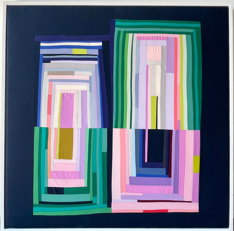 This collection of new work demonstrates Annabel's confidence. In her second solo exhibition Wrigley re-asserts her interest in color while allowing room for rich surface exploration. Hand stitched marks layer on top of machine quilted areas, highlighting the artist's concentration. Additionally some areas without top stitching at all allow the color to be the singular focal point. Surfaces become as much a conversation as her undeniably signature use of intensely saturated fabrics.