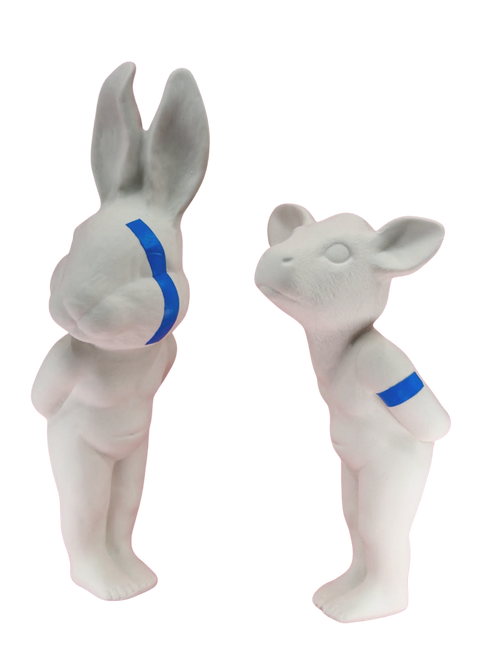 Jeff Herrity makes surrealist figurines that are created from vintage plaster molds. His work is based on the memories of ceramic figures his mother made when he was younger. His surrealist figurines or ‘dolls’ have become popular collectible items. The series of dolls were first shown at the Hillyer Art Space in 2014, then the Fridge Gallery in 2015, and the Hirshhorn Gift Shop where they were sold to support the Marvelous Objects: Surrealist Sculpture from Paris to NY show.