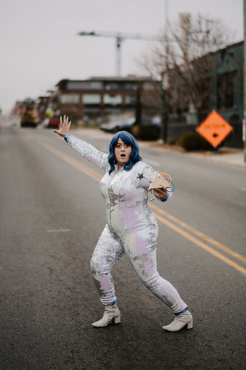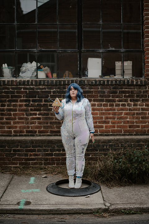 Archer Adler, one of the many alter egos of Richmond-based artist Rachel Rader, is a character that is derived from Rachel’s current obsession with time travel. Archer is uniquely messy, scattered, ruthless, and unstable. Archer Adler (an anagram of Rachel Rader), is a time traveler and the newest character of an ongoing project called Ancient Truth Investigators (ATI) that Rachel created over 10 years ago. ATI is a narrative-driven exploration in performance art, wearable objects, and sculptural forms. By embodying the characters in her ATI storyline, Rachel invites viewers to suspend disbelief and engage in her artwork, with a heightened sense of receptivity to a fantastical experience.
